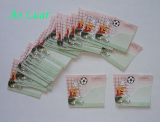 As embalagens que continha as lembrancinhas usando cartolina com motivos de parede de tijolos